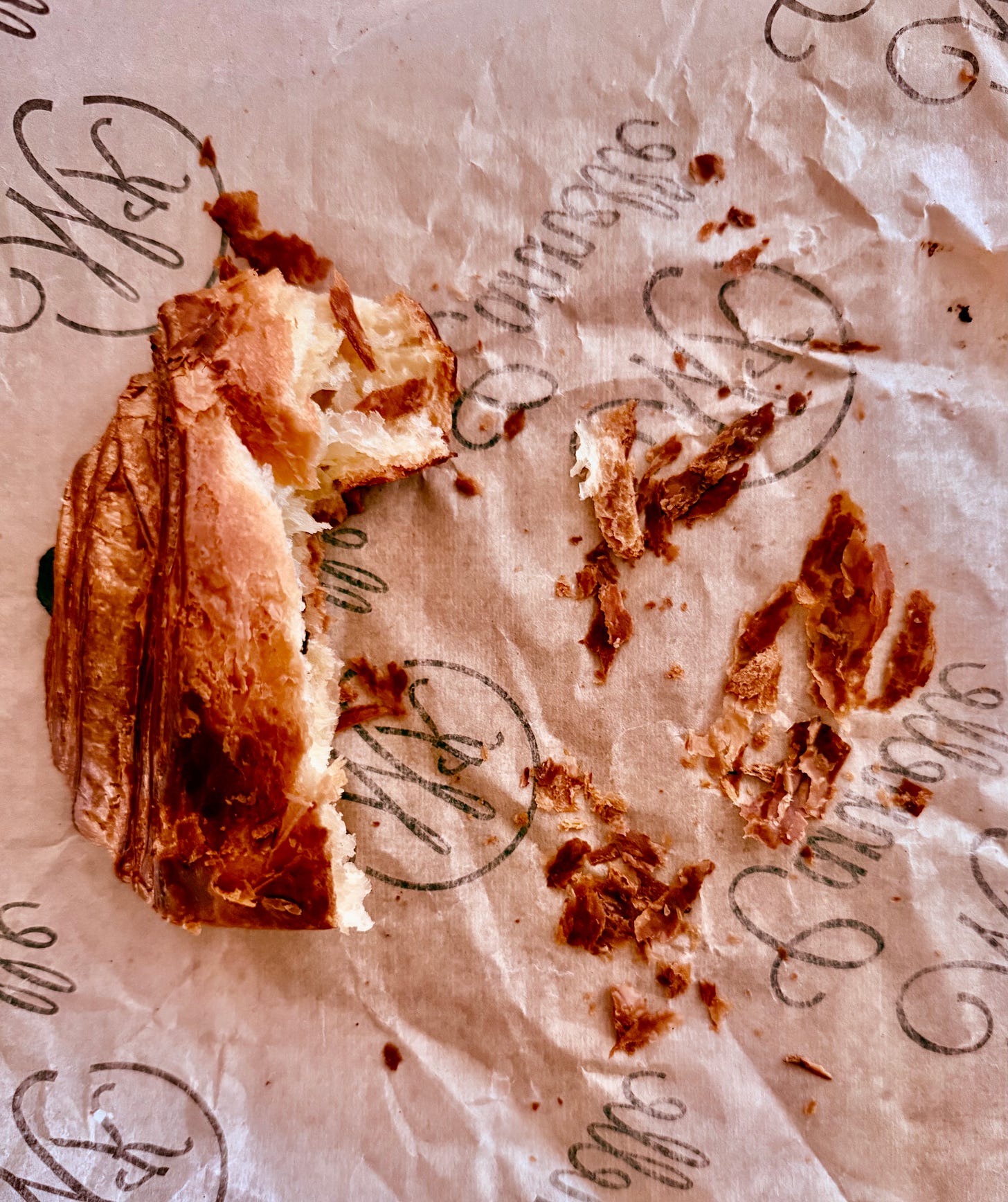 I took a walk today and meandered past a pastry shop filled with familiar goodness. I stopped to buy, not a sample or a crumb, but a whole piece.