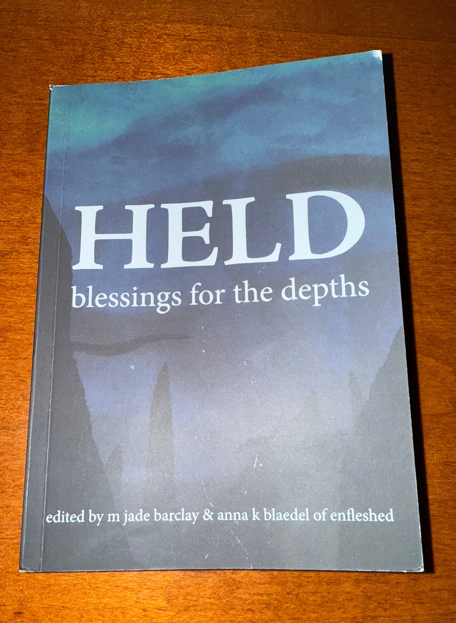 In 2021, I submitted a poem, Starting Over from Scratch to enfleshed. It was published in HELD: blessings for the depths. I have more than one copy, but clearly had forgotten about the copy in the shoe box. Holding HELD again was a holy moment. I turned to my poem and read it several times. Overcome with emotion. Good tears. Gracious gratitude. A gentle realization that starting from scratch isn’t what I once imagined. That starting over is less a beginning and more a continuation. A transformation. An expansion. Part of the ongoing, every evolving process of being human.