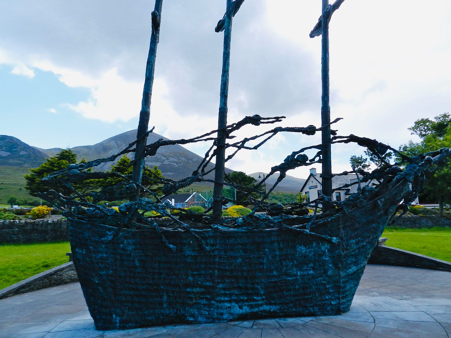 Growing up I heard accounts of the famine and how it propelled millions to emigrate from the land they loved. Visiting The National Famine Monument in the village of Murrisk, in County Mayo on Ireland’s Atlantic coast at the foot of Croagh Patrick, was a haunting encounter. The bronze sculpture is of a “coffin ship” crafted to symbolize the more than one million people who perished as a result of starvation and disease, many of whom died in those ships desperately attempting to escape hunger and find new life.