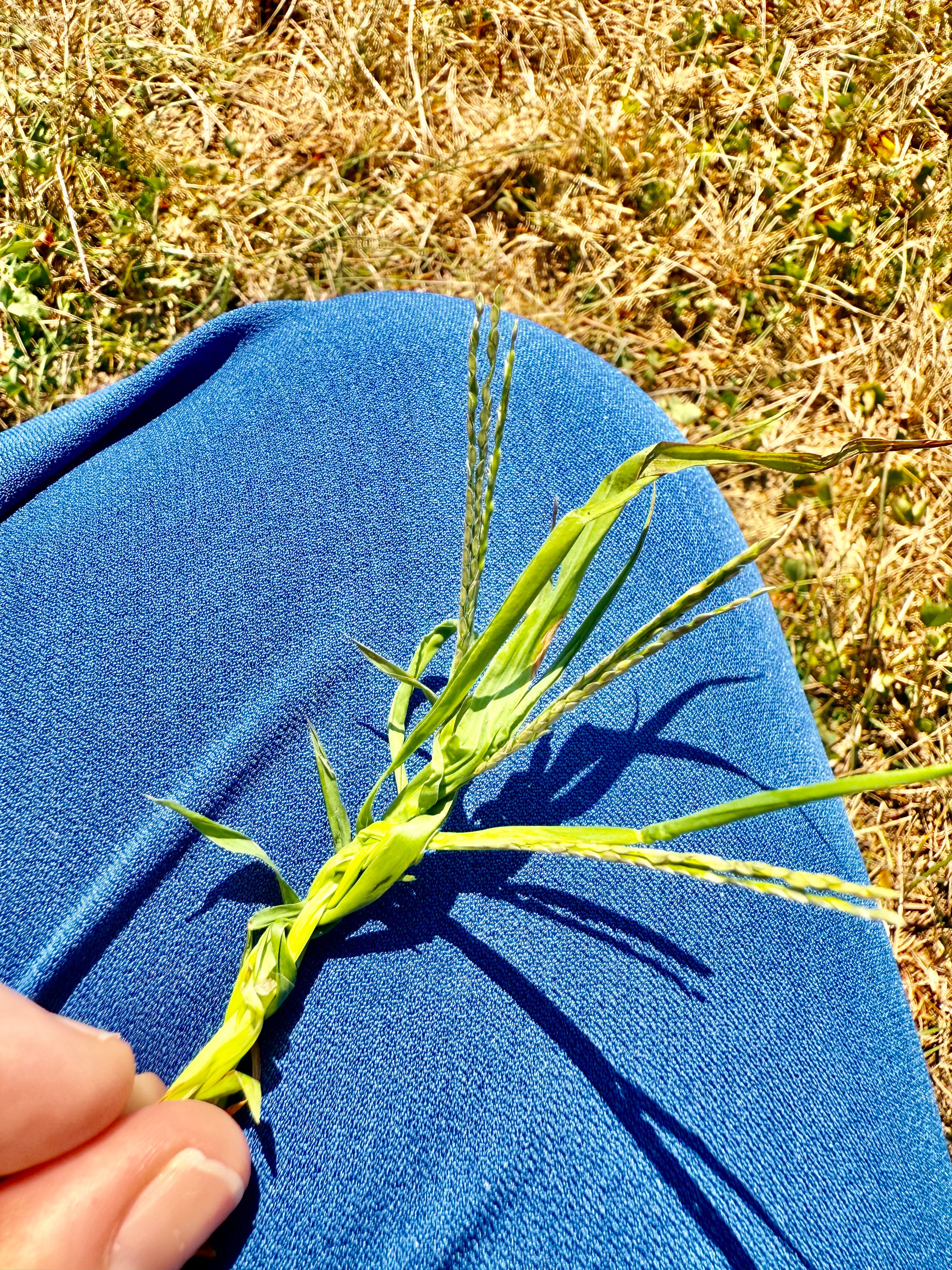 I recalled learning about grass in elementary school. It’s a vital part of our eco-system. Good for air and water quality. Providing shelter and sustenance to animals, protection to soil, and fiber for materials. A soft cushion for kids rolling down hills with friends and cousins or falling while learning to ride a bike.